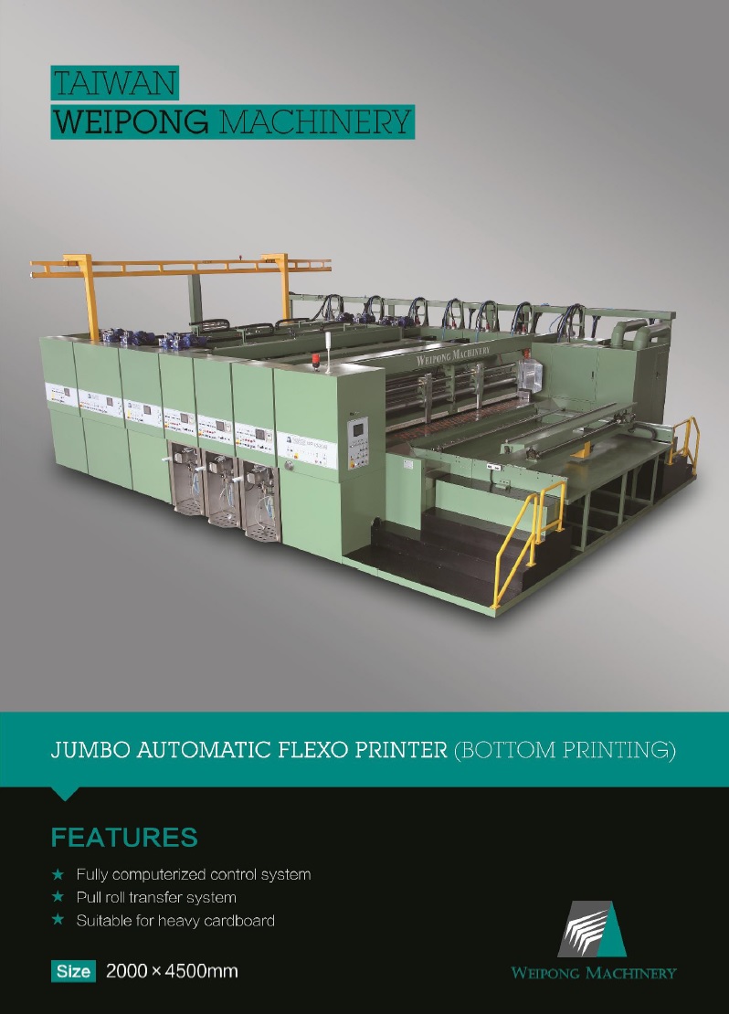 Yangzhou Weipong Machinery Co., Ltd. byla založena v Yangzhou, Jiangsu v roce 2004 panem Xiao Zhiming, generálním manažerem taiwanského sídla společnosti, které se těší z 30-ti let zkušeností a odborných znalostí v celozávodní výrobě strojů Automatický Flexo-Tiskový Slotter. Weipong se rozkládá na ploše 20.000 m² s investicí ve výši US $ 6.000.000. Po dokončení stavby v roce 2005, byl závod uveden do provozu a výroby v roce 2006. Mnozí lidé jsou zmateni z této investice taiwanského sídla společnosti, jehož předmět podnikání je stále více a více prosperující na Taiwanu. "Hodnota investice spočívá v budoucnu, ne teď." Odpověděl Xiao s důvěrou: "To je důvod, proč jsem si vybral Yangzhou, region s vysokým potenciálem."